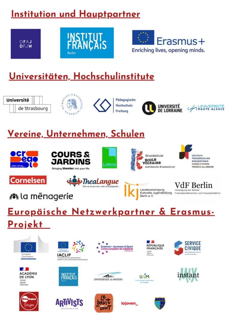 Dank dieser Partner kann Thealingua Tandemaufenthalte, Entdeckungsworkshops und europäische Projekte organisieren und seine Methode und Werte in Deutschland, Frankreich und ganz Europa verbreiten.